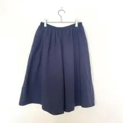 デニム風のライトブルーガウチョパンツ、ゴム入りウエストで快適な着用感。