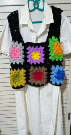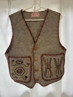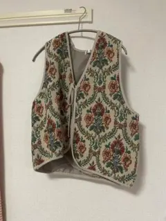 ジレ ベスト レトロ アニマル 裏地 総柄 パッチワーク 派手 一点物 短丈