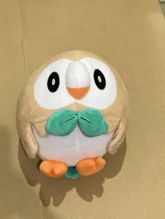 かわいいモクローのぬいぐるみ、約15cmのサイズで持ち運びに便利です。
