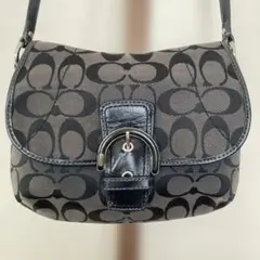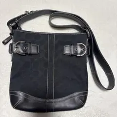 良品 COACH ショルダーバッグ 黒 シグネチャーキャンバス