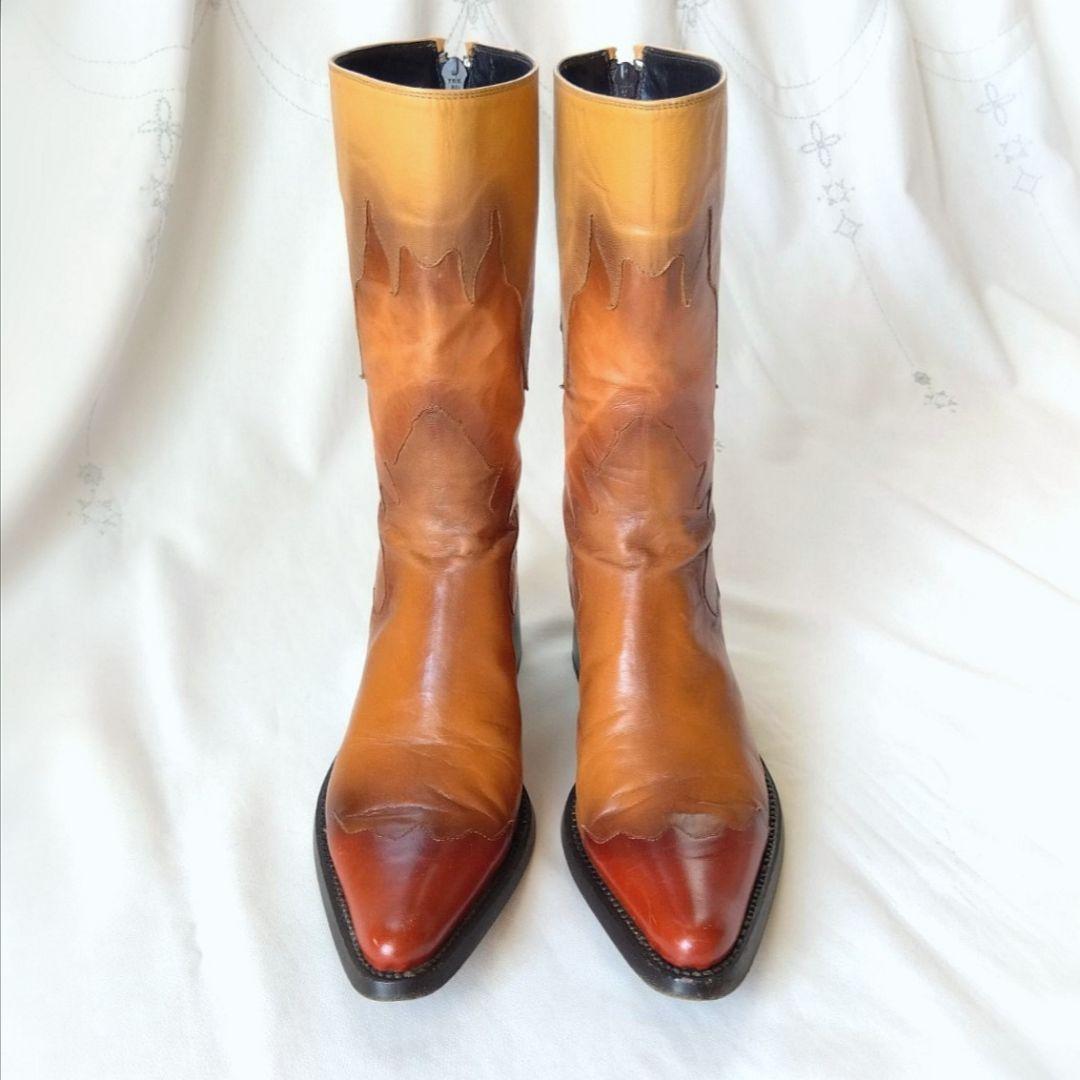 ▫デザイン性のあるウエスタンブーツ調のショートブーツです。高級感があります。筒のレザーは薄手です。オールレザーでインソールにも本革のマークがあります。ヒールも高すぎず低すぎずで丁度良いと思います。ファスナーは安心なYKKです。