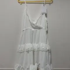 フラワーフリンジジャガードリボンストラップキャミワンピース