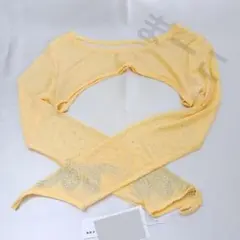 やわらかなバンブーにレースを覆ったこちらのブラトップは、レースのドレープを縛ることによってお腹の空き具合を調整できる意匠。