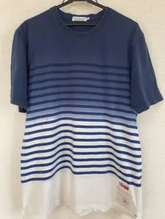 ネイビーのVネックデザインで、シンプルながらもスタイリッシュな印象を与えます。半袖のスタイルは、カジュアルなシーンにぴったりです。