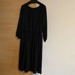 【S】a.v.v 黒 ブラック リボン パフスリーブ ロングドレス ワンピース