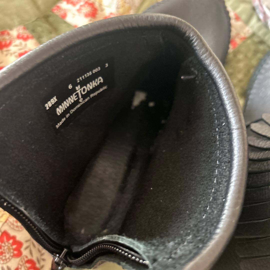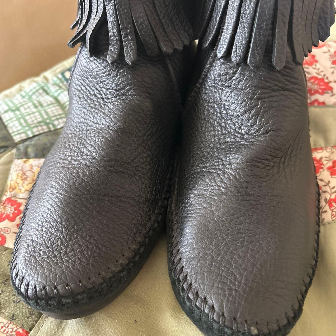 Minnetonka フリンジ付き黒レザーブーツ
