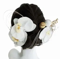 可愛い胡蝶蘭髪飾りセット 金箔 白無垢 和装前撮り 成人式 結婚式 卒業式 水引