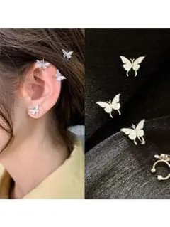 ピアス レディース 女性 おしゃれ 可愛い ゆらゆら 揺れる アクセサリー イヤリング イヤーカフ 蝶 蝶々 バタフライ ロングピアス チェーン シルバー 高級 韓国 上品 大人 派手 フリンジ タッセル ビジュー CZジルコニア ジルコン クリスタル 恋人 プレゼント 贈り物 プチプラ 2次会 ドレス 新品 激安 5