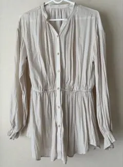 グローバルワーク フレンチリネン混 オーバーサイズシャツ M ベージュ系