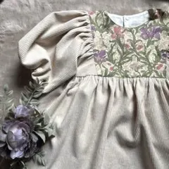 ぽわん袖ワンピース ハンドメイド ボタニカルフラワー 100〜110㎝
