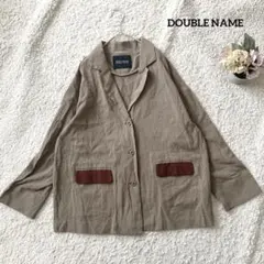 ブラウンとベージュのラメ入りチェック柄のテーラードジャケット、厚手の生地で季節感を演出。