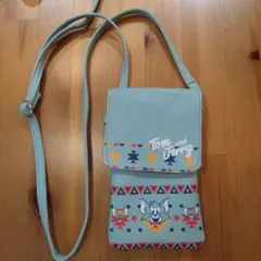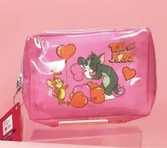トムとジェリーのキャラクターがデザインされたコンパクトなマルチポーチ、耐水性素材でジッパー付き。