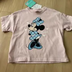 ミニーマウスの刺繍が施されたピンクのバルーンスリーブTシャツ。