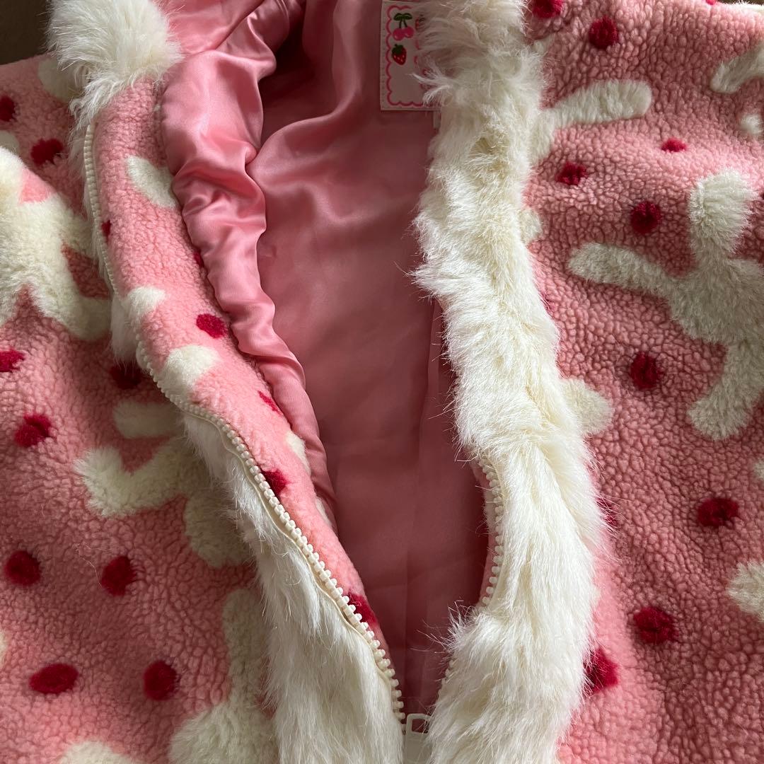 シャーリーテンプル うさぎ柄 うさ耳フード ボア コート 100cm