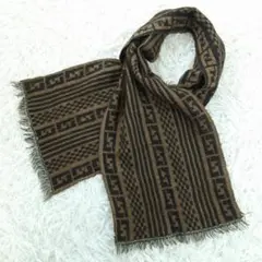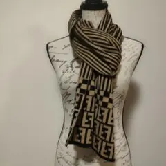 Fendiのブラウンストライプマフラー、ウール混紡素材で温かさとスタイルを兼ね備えています。