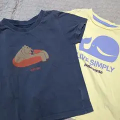 前面に「TNF」のロゴが施されたピンクのTシャツ、サイズ110。