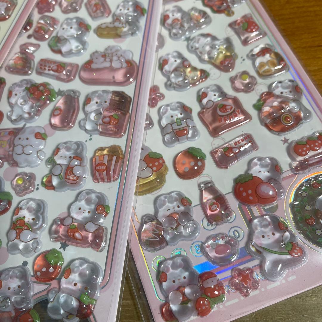 ぷくぷくシール 3D立体 うさぎボンボンドロップ風シール 手帳シール 4枚セット