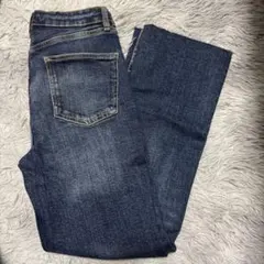 ダークブルーのハイウエストストレートデニム、前後にポケットあり。