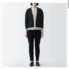 このMUJIのショートカーディガンは、シンプルで洗練されたデザインが特徴です。柔らかいピンク色は、リラックスした雰囲気を演出します。