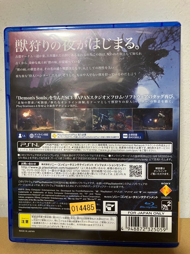 PlayStation 4用のアクションRPG『Bloodborne』。CERO Dレーティング、ディスク状態良好。
