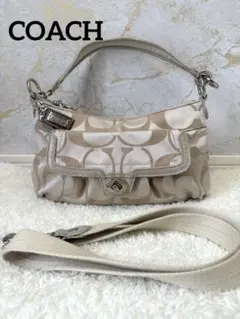 COACH コーチ ショルダーバッグ シグネチャー キャンバス レザー ホワイト