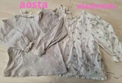 韓国子供服 aosta ベージュ フリル付き コーデュロイブラウス L90サイズ