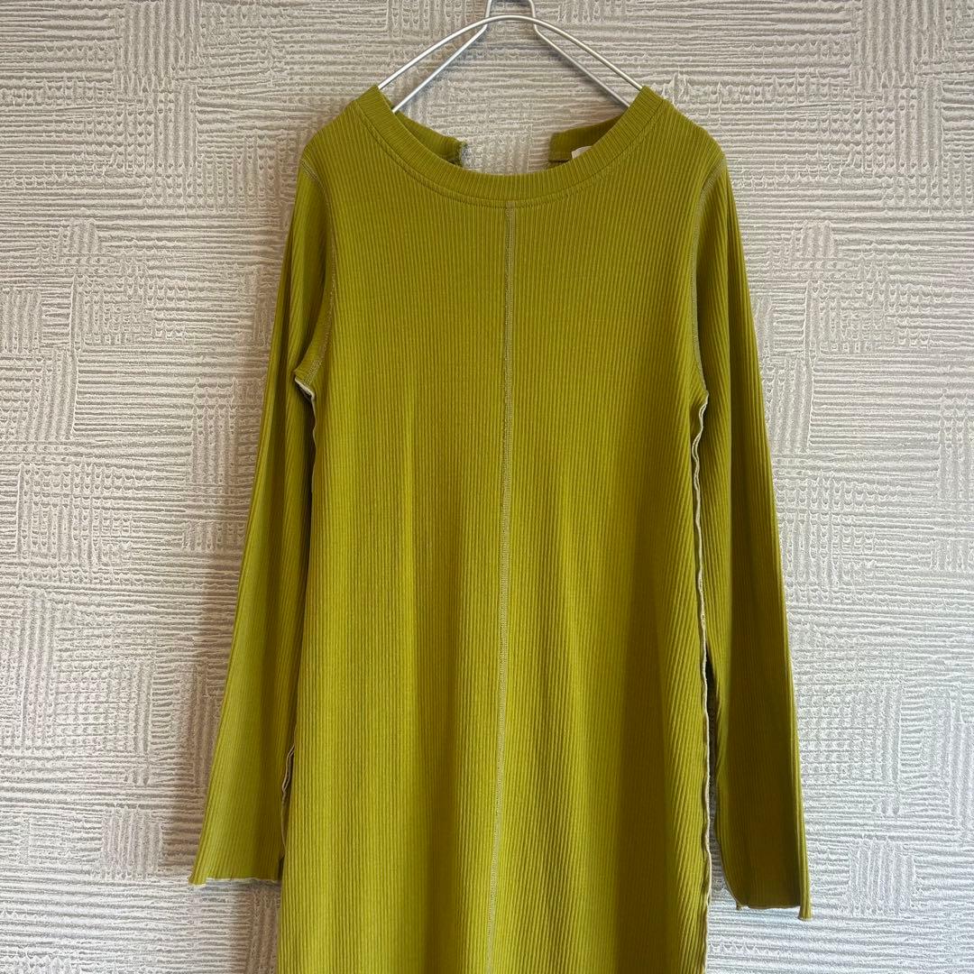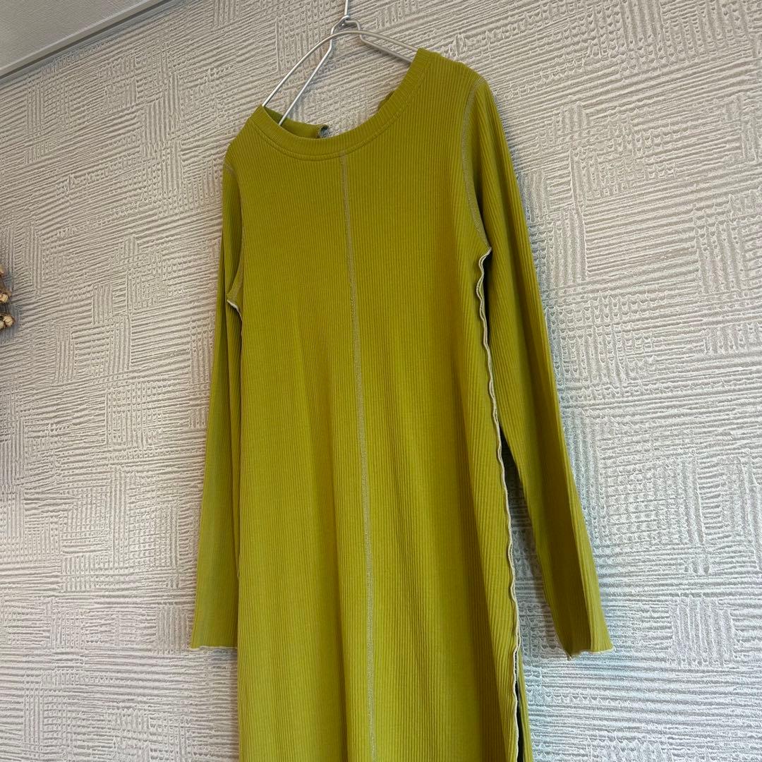 【美品】IENA LA BOUCLE☆リブメロウサイドスリットワンピース 日本製 オリーブグリーン