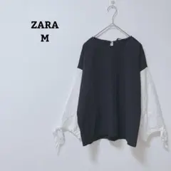 ZARA ザラ フリルブラウス ブラック S コットンレース ボリューム袖