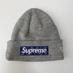 supreme ニット帽 ボンボンニット帽 水色ストライプ ビーニー