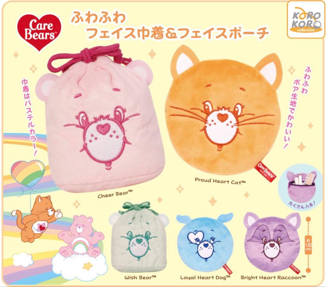 ケアベア ふわふわフェイス巾着&ふわふわフェイスポーチ