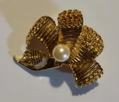 パール リース型 ゴールド 高見え セレモニー パールブローチ