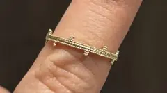 重ね付けに非常に使いやすいデザインで、こちらのリングを1番下にして、上に地金とダイヤの3本重ねで使用してました。