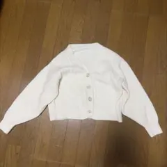 ウエストゴムとボタン付きのアイボリーカーディガン。