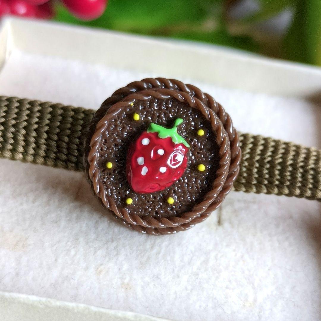 樹脂系の可愛らしいストロベリーチョコスイーツケーキを帯留め帯飾りに