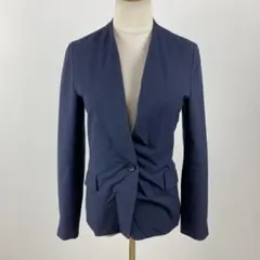 PLST Lサイズ ノーカラー ジャケット ブラック 肩パット