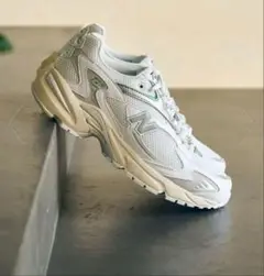ホワイトとシルバーの配色で、快適な履き心地を提供するNew Balance 725スニーカー。