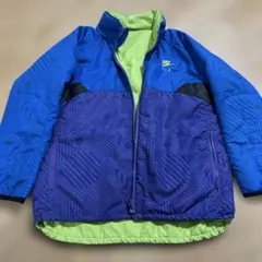 ネイビーのNikeジャケット、ジッパー付きでストライプデザインが特徴。