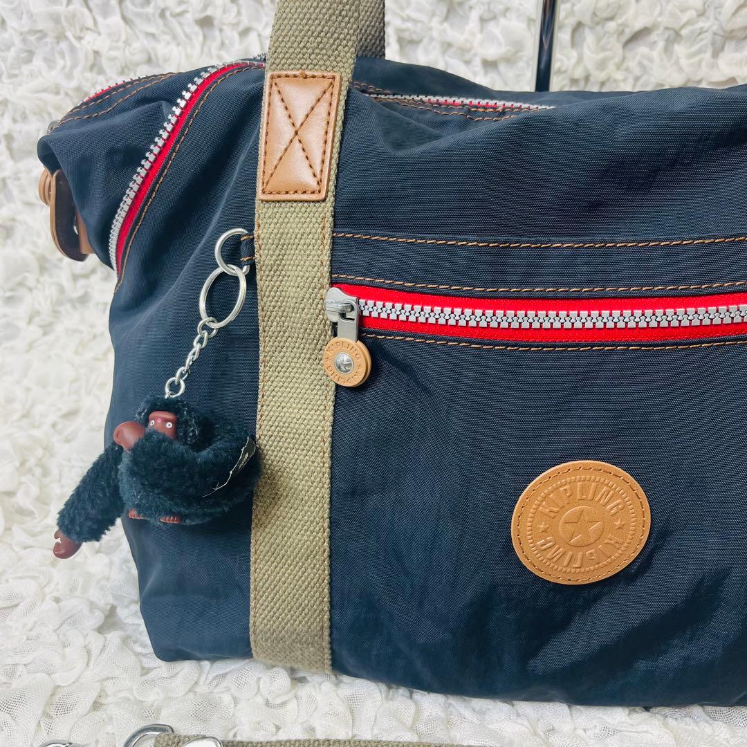 kipling キプリング 3wayショルダーバッグ ボストン ナイロン 紺ネイビー キーホルダー モンキー Monkeyチャーム
