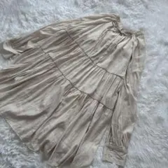 美品アースミュージック フリー 長袖レースプリーツブラウス とろみシフォン