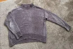 ワイドリブで編み続きモックネックのシアープルオーバー。光沢を抑えたマットな表情のレーヨンポリエステルを使用して、透け感のあるニット。