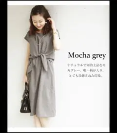 ダークネイビーのトップスとプリーツスカートのドッキングタイプのワンピースで、ウエスト部分にドローストリングが付いています。授乳服なので、トップス部分をめくり上げるとスリットが入っています。