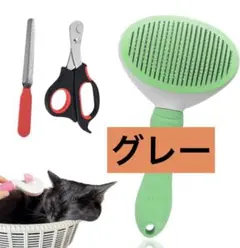 ペットお手入れ3点セット グルーミングブラシ 爪切り 爪やすり ペットケアグッズ 犬 猫 (グレー)