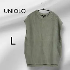 【UNIQLO】ユニクロ クルーネックノースリーブニットベストセーターLグリーン