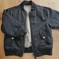 UNIQLO製のキッズ用MA-1ジャケット、サイズ150、ナイロンとポリエステル素材で耐久性あり。