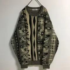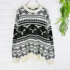 古着 90sヴィンテージ 総柄ニットセンター 昭和レトロ ユニセックス 日本製