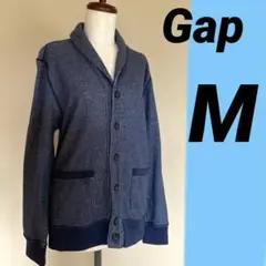 オリーブグリーンのGap製カーディガン、フロントボタンとポケット付き。
