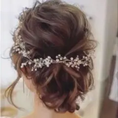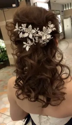 ホワイトの花モチーフとパールが美しいウェディング用ヘッドドレス。