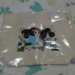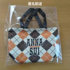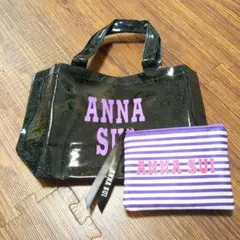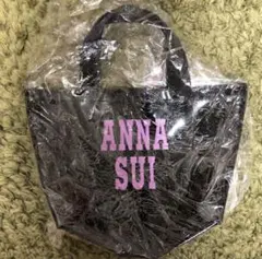 ラメ入りの黒いトートバッグ、紫色のANNA SUIロゴ付き。