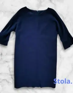 ストラ M ウールひざ丈ワンピース Aライン 七分袖 日本製 無地 上品 裏地