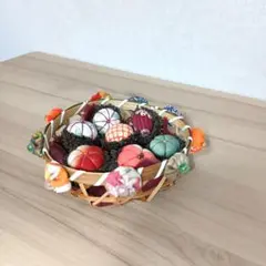 花柄のちりめん細工、円形デザインで多彩な色合い。